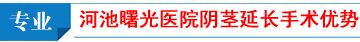 河池曙光男科医院引进国际先进阴茎延长技术——EAU阴茎延长术属于细创高端技术,它运用内窥镜技术实施手术,释放腹腔内的阴茎组织来达到延长效果,由于手术本身不往阴茎内填充材料,也就不会损伤尿道及射精功能,也不会影响勃起及生育功能。”EAU阴茎延长增大术”手术细创、损伤小、无痛苦、无需住院,术后恢复快、效果好,副作用小,不会影响勃起功能,该手术不但能够使阴茎有效延长3-5cm,而且不留疤痕,不影响阴茎美观。点击详细了解阴茎延长术!